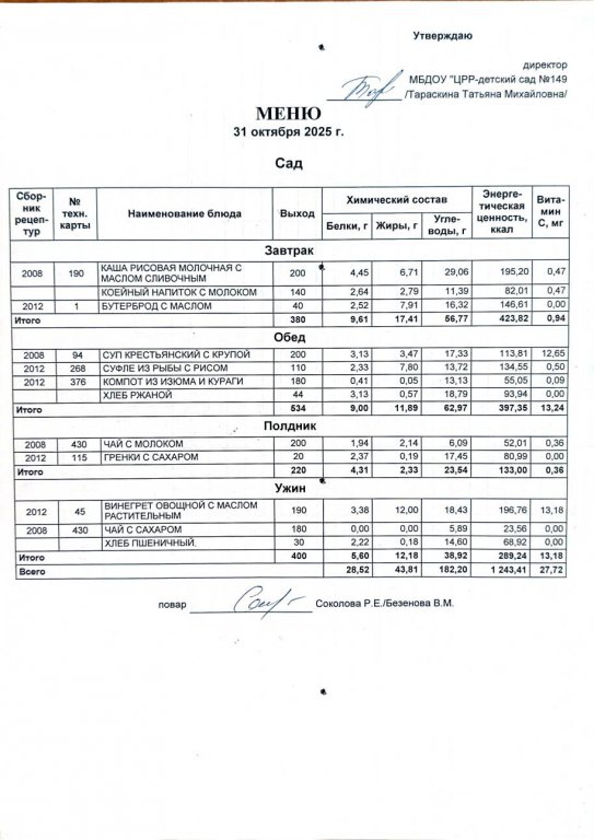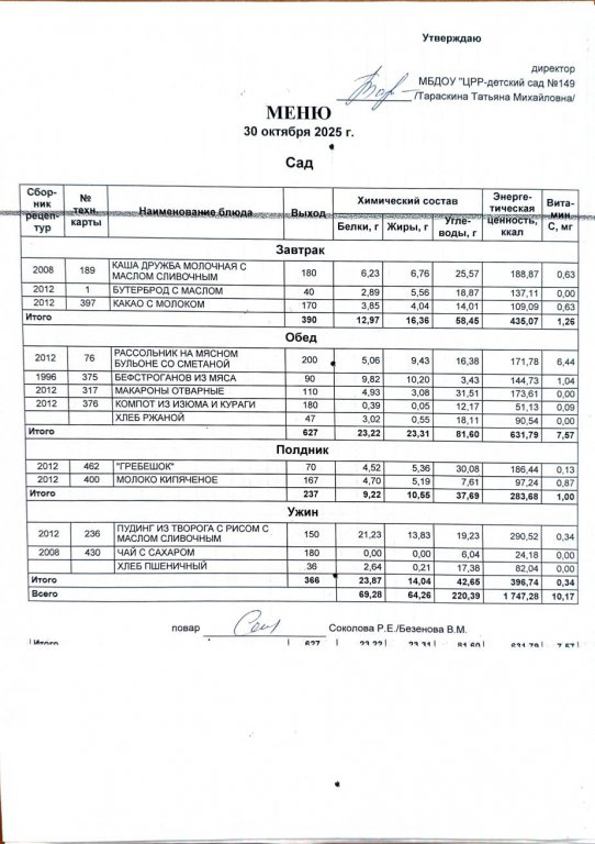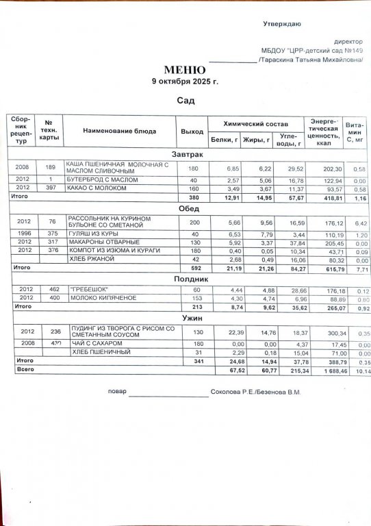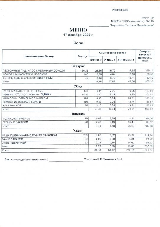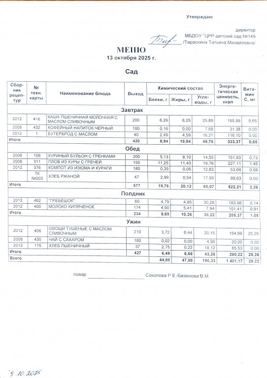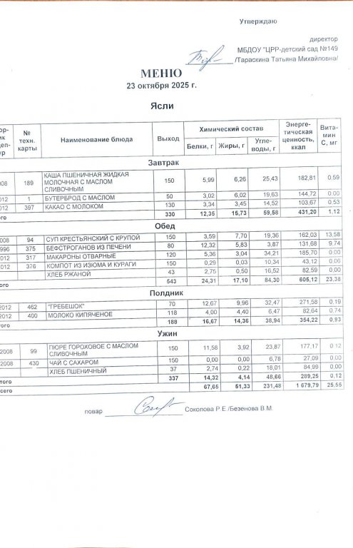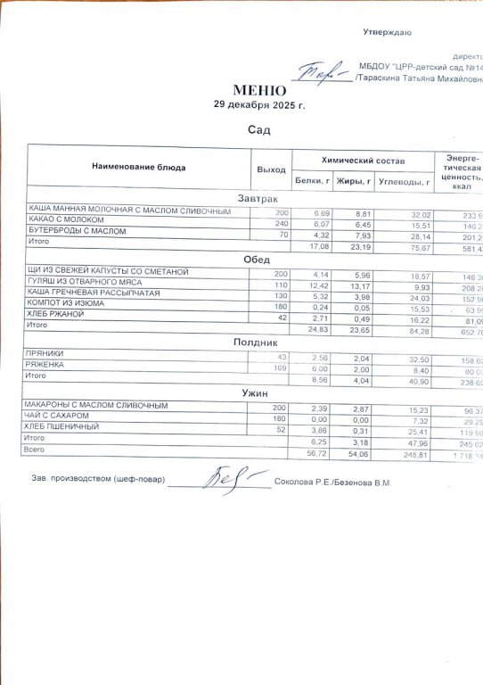 Ежедневное меню